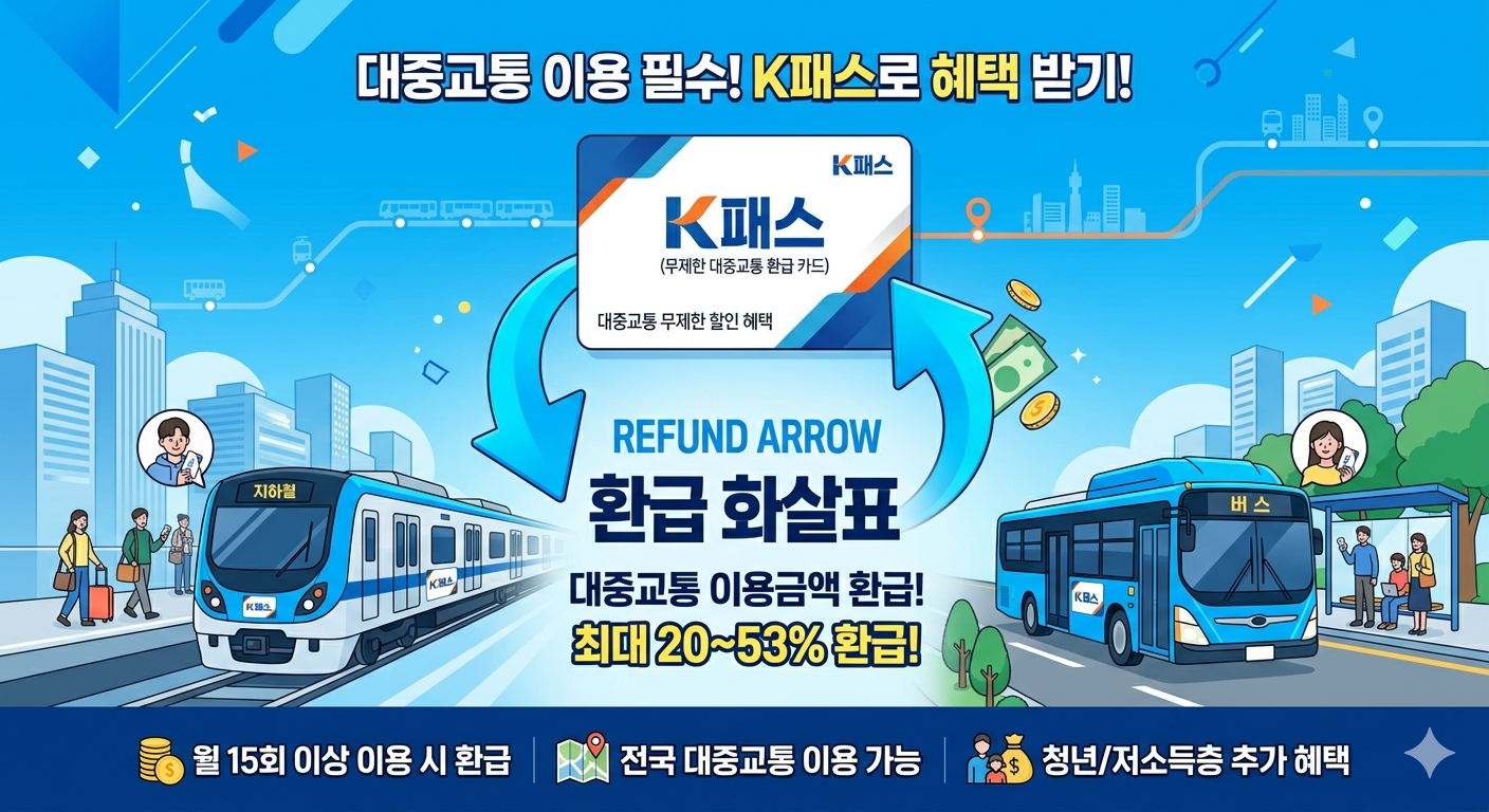 고유가 추경이 통과되면서 K패스 환급률이 4월부터 9월까지 6개월간 최대 30% 포인트나 올랐습니다. 저소득층이라면 교통비의 83%를 돌려받을 수 있고, 일반 이용자도 30%가 환급됩니다. 이미 K패스를 쓰고 있다면 자동으로 인상된 환급률이 적용되고, 아직 가입하지 않은 분이라면 지금이 가입 최적 타이밍입니다. 오늘은 K패스 환급률 인상 내용과 신청 방법을 깔끔하게 정리해 드립니다.