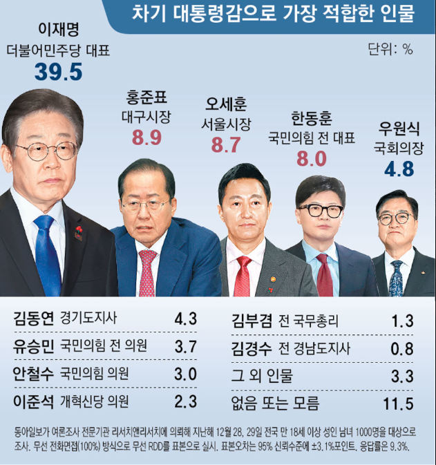 - 더불어민주당: 윤석열 전 대통령 파면 이후 지지율이 상승세
