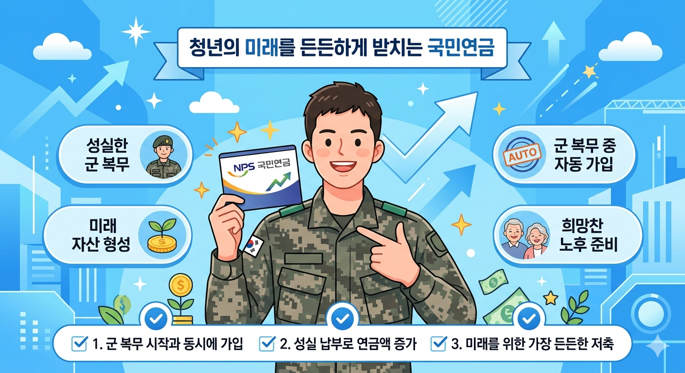 군대 갔다 온 아들·남편을 두신 분들, 혹은 전역을 앞둔 청년들이라면 반드시 알아야 할 소식이 있습니다. 2026년 1월부터 국민연금 군복무 크레디트가 기존 6개월에서 최대 12개월로 두 배 확대됐습니다. 보험료를 한 푼도 내지 않고 국민연금 가입기간이 늘어나는 제도인 만큼, 모르면 그냥 지나치는 혜택입니다. 오늘은 군복무 크레디트의 개념부터 변경 내용, 대상자 조건, 연금액 증가 효과까지 한 번에 정리해 드립니다.