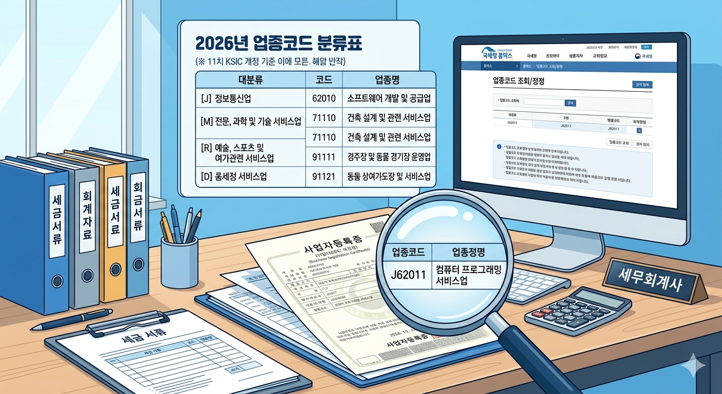 📋 2026년 업종코드 분류표 조회 및 사업자 업태 총정리 (홈택스 바로가기 포함)