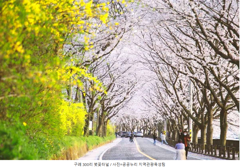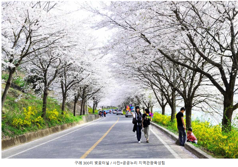 - 구례읍 벚꽃 터널: 양쪽으로 늘어선 벚꽃나무가 만드는 환상적인 터널 경험