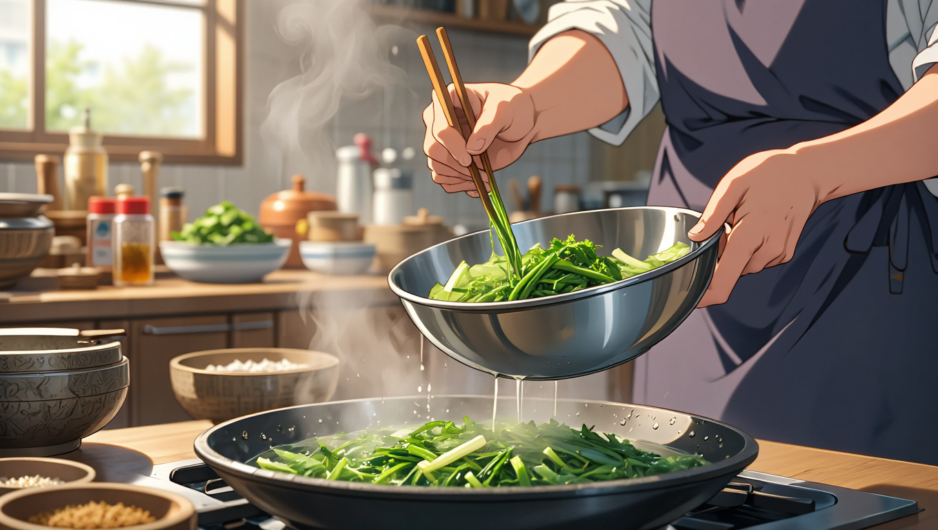 너무 오래 데치면 질겨질 수 있으니 1분 내외가 적당합니다 [5][9][16][18]. - 찬물에 헹군 뒤 물기를 꼭 짜서 준비합니다.